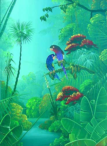 " Parrot Jungle " Size: 30 X 40 Sold