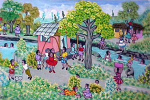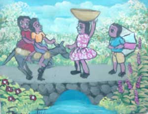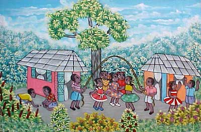 | Born in Les Anglais on June 2,1953,Francoise started drawing at an early age. In 1968,one year after moving to Port au Prince, she met Petion Savain, her neighbor and started working with him until his death in 1973.Francoise, then worked with the talented Jean Richard Coachy. One of her paintings was purchased to represent "The International year of Children" by the FAO in Germany. When asked why she only paints children, she simply replies, "children are my source of inspiration". Her work has been exhibited in Martinique, Guadeloupe, Haiti. Francoise lives in Petion Ville. |