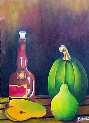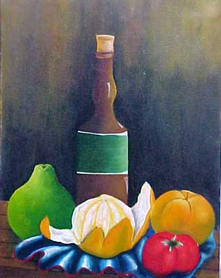 " Bottle & Fruits " Size: 12 X 16 - $ 175