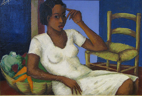 Born on July 22, 1931 in Limbe, Nehemy joined the "Centre D'Art " in April 1947 where he worked under Dieudonne Cedor as a primitive painter. He became the secretary of the Haitian Artists Association in 1950 and joined Cedor, L. Price, and Max Pinchinat at the Hall of Plastic Arts. He moved to new York in 1954 where he studied painting at the Art Student league and anatomy at Columbia University. In 1956, with J. Gabriel, Roland Dorcely, Cedor and Luckner Lazare, he co-founded "Galerie Brochette". He won a scholarship from "UNESCO" and moved to Brazil in 1958 where he worked with Portineau. Nehemy has also taught art at "L'atelier", owned and operated his own art Gallery on his return to Haiti. Nehemy has exhibited in the USA, Haiti and Europe. His paintings are very rare and almost unavailable. |