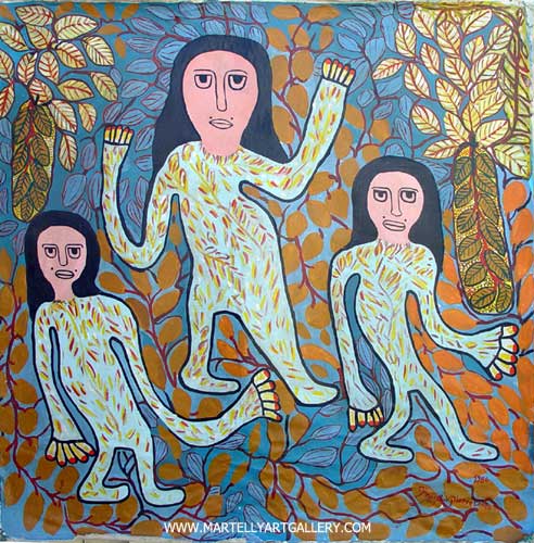 | Born on October 12,1947 in Jacmel. He co-founded "Saint Soleil" with Tiga and Louisianne Saint-Fleurant, a "school of painting" admired by Andre Malraux, Selden Rodman Co-founder of Centre d"art in Port-au-Prince, among others. He was one of the best-known of the Saint Soleil group. He exhibited widely in Haiti, Israel, Germany, at Soisson La Montagne festival, France 1975, USA etc. Prospere Pierre Louis died in November 1996. |