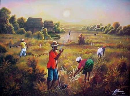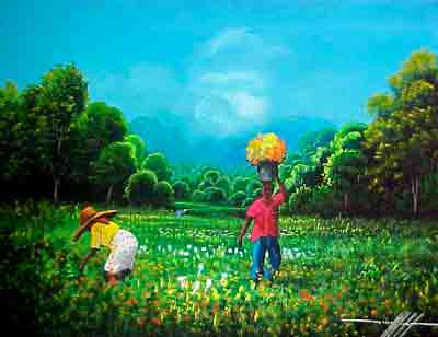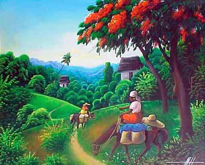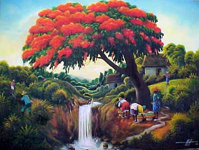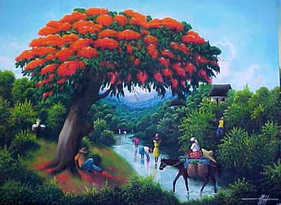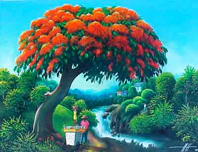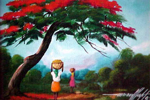 | Simeon Michel, the master of the "Flamboyant" began to draw at an early age. He developed his own style and used colors that made him instantly recognizable by collectors all over the world. He claims that painting, to him is more than a passion, it's a madness. His paintings depict the Haitian countryside and remind us of the French "impressionistic" style. Simeon is by no doubt, an excellent choice for any collector. |