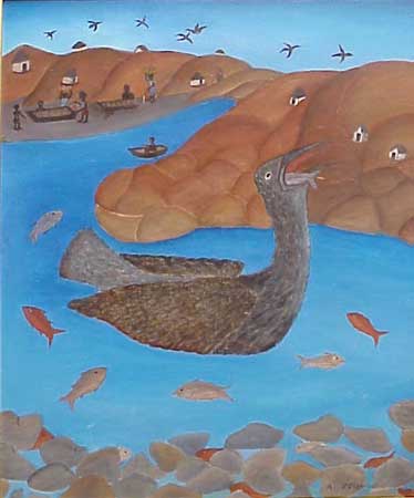| Micius Stephane was born in 1912 in Bainet, on the Caribbean coast of Haiti. He worked as a cobbler and then as a painter. He joined the Centre d'Art in 1948 at the encouragement of DeWitt Peters, subsequently moving to Port-au-Prince in 1956. He is credited with having brought Edger Jean-Baptiste to the Centre d"Art. His son, Peters Stephane, and his daughter, Edith Stephane, are also painters, each working in distinctive styles clearly influenced by their highly successful father. His work is included in the permanent collections of the Detroit Institute of Arts, Musée d’Art Haitien and the Milwaukee Museum of Art, and is published in Island on Fire (Demme, 1997), Where Art is Joy (Rodman, 1988) and Haitian Art (Ute Stebich, 1978). Stephane passed away in 1996. |