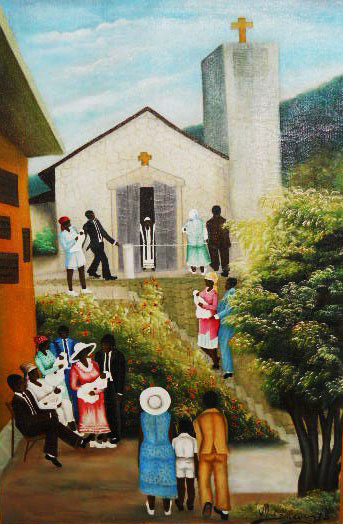 His inspiration usually comes from his dreams. No matter the source of his inspiration, Daleus will exquisitely put in on canvas. He creates a fusion of native , primitive, impressionism, surrealism, abstract, realism and classic. In 1988 Daleus was given the honor of restoring the old paintings of the master of the presigious school of Naives, Philome Obin. His paintings have hung in many places such as the Topen Musem in Amsterdam, The Brooklyn Museum in New York, The College St. Pierre, the Mupana Museum in Port-Au-Prence, the Cornell Museum in Delray Beach, Florida. He has exhibited in France, Germany, Spain, The Ivory Coast, Venezuela, Canada, The Ivory Coast, The Dominican Republic, The Bahamas... |